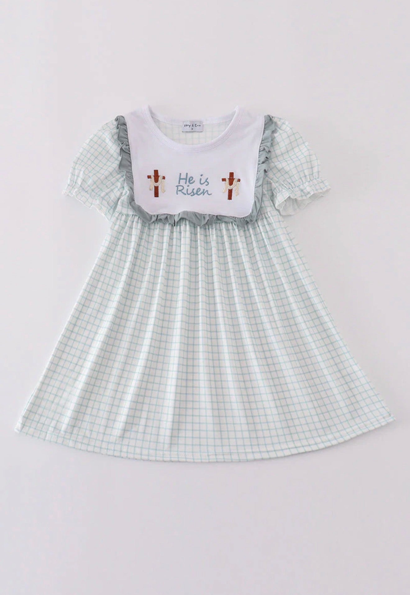 Add some style to your wardrobe with our Blue He Is Risen Embroidery Dress. This playful dress features charming blue embroidery and a flattering silhouette. Perfect for Easter celebrations.