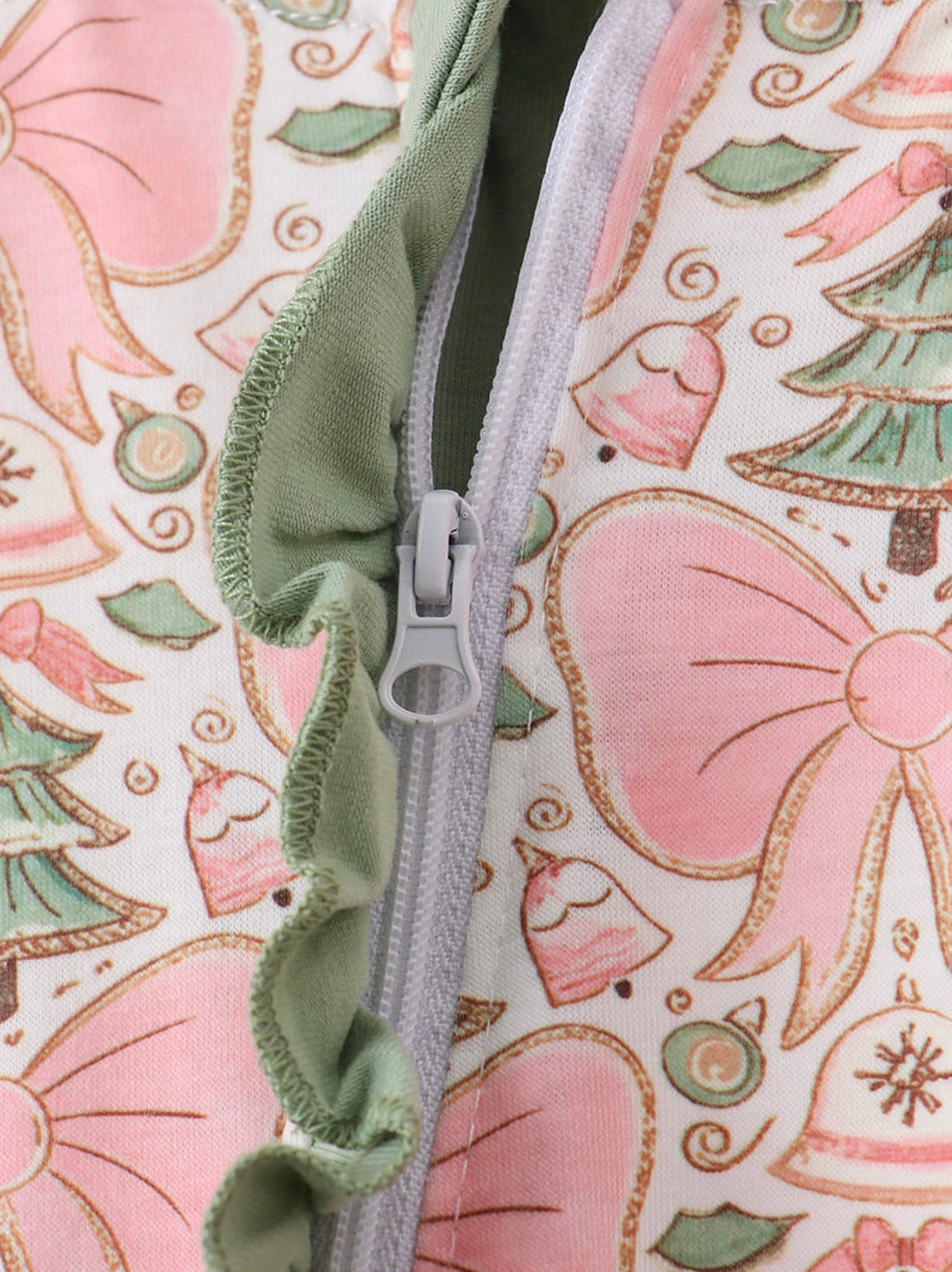 Green Christmas tree “Mama’s Girl” embroidery zipper romper