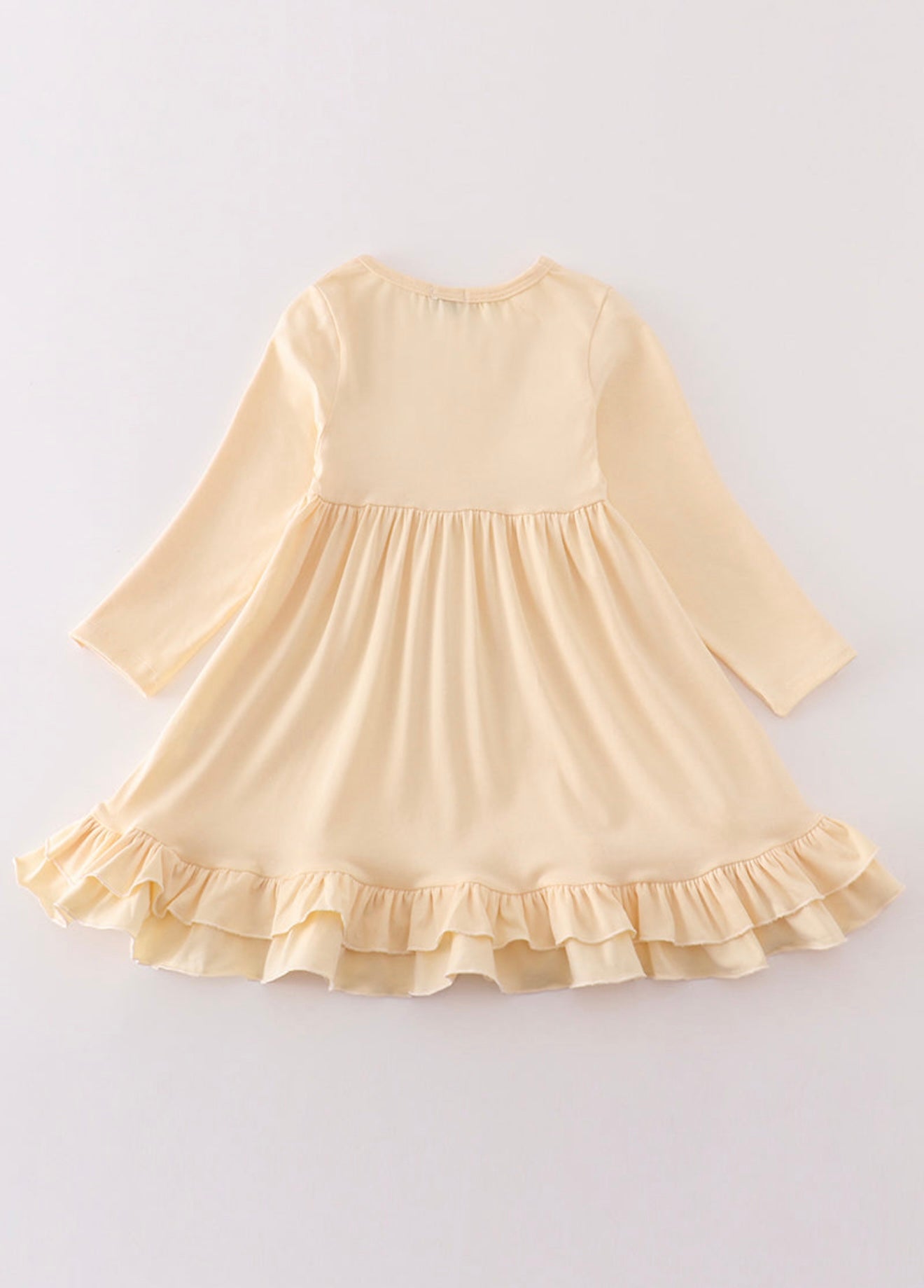 Get your little fashionista twirling in our cream ruffle girl dress. With its vibrant color and playful ruffles, she'll be the star of the show. Perfect for parties, playdates, and fun photoshoots. As comfy as it is stylish!