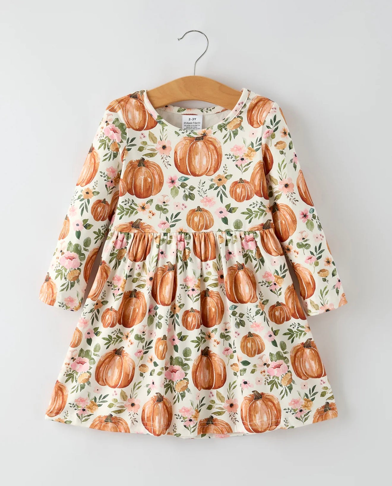 Fall Thanksgiving Pumpkin Girl’s Floral Print Long Sleeve Dress