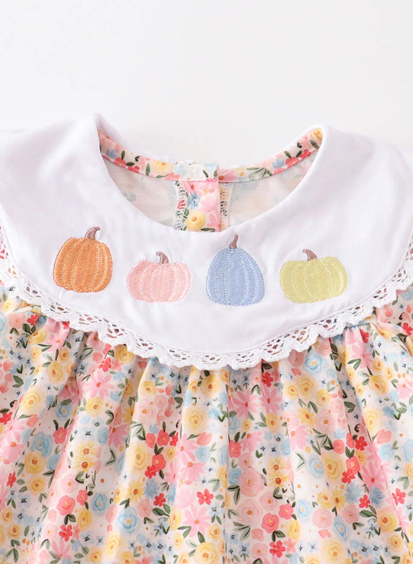 Step into the pumpkin patch with style in this unique floral print dress! With its playful pumpkin embroidery, this dress is sure to bring a smile to your face (and everyone else's) - perfect for when you want to make a statement!