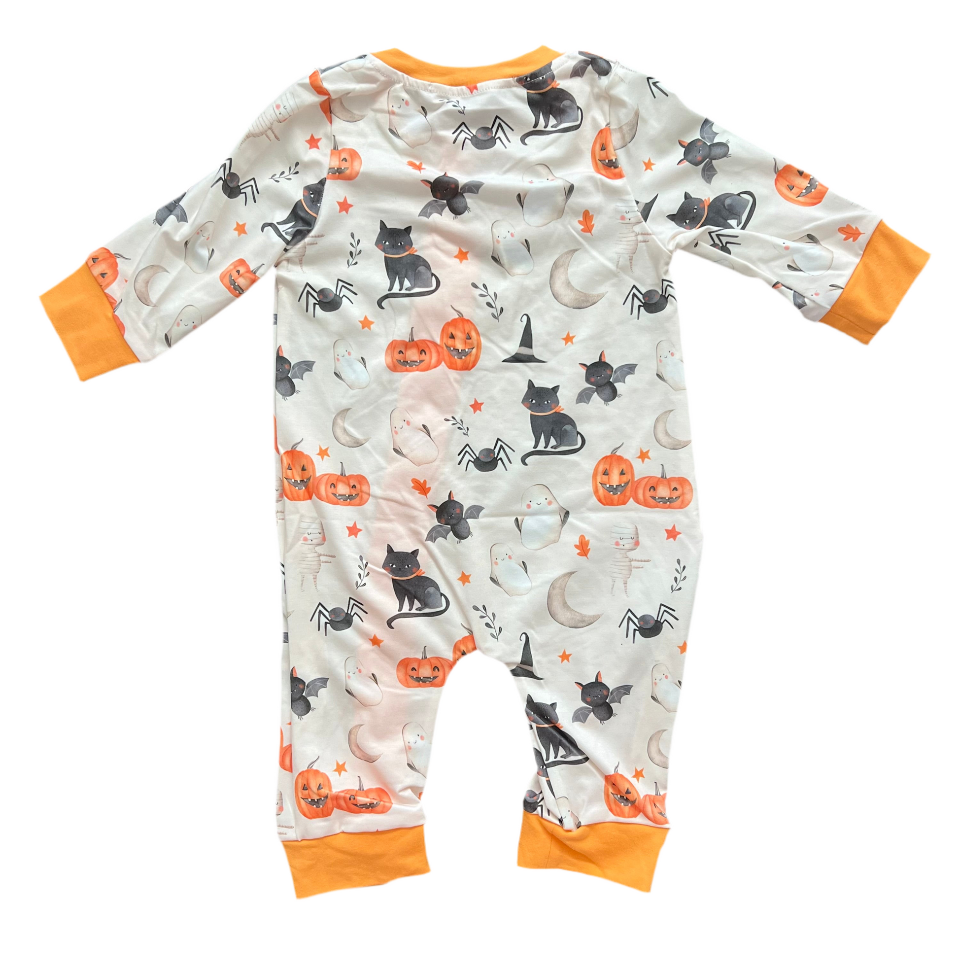Get your little one ready for a spooktacular Halloween in this orange romper featuring a convenient zip design.Made from soft, durable fabric, it's perfect for all-day wear. Let your little girl stand out in style while staying comfortable in this quirky romper.