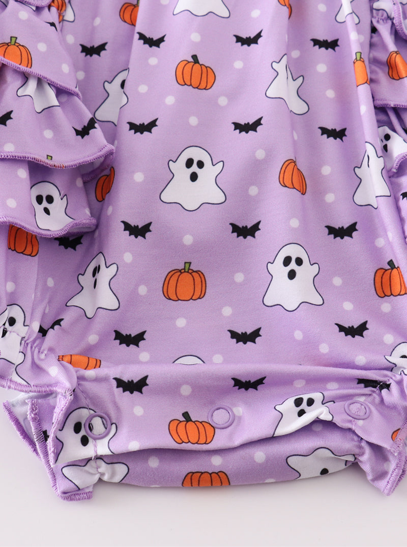 Boo-tifully dress your little ghoul in our Purple Halloween Print Girl Bubble! This playful bubble features a spooky print and vibrant purple color, perfect for trick-or-treating. Keep your little one cute and comfy with this quirky and fun outfit!