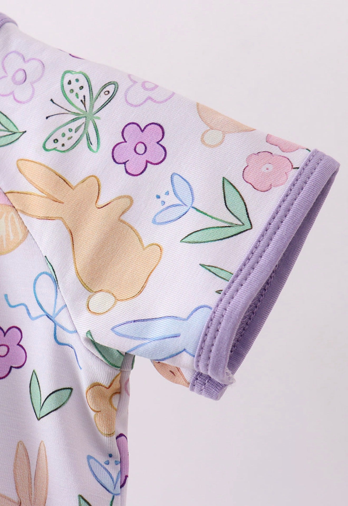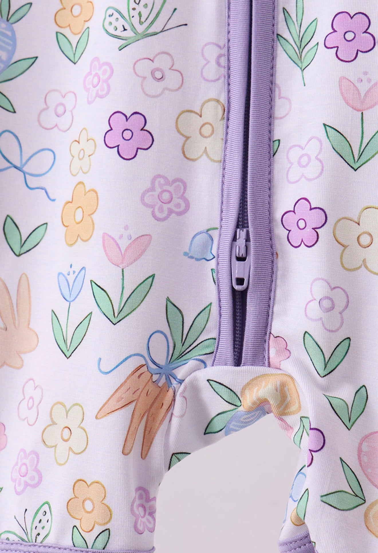 Purple floral print bamboo girl’s romper