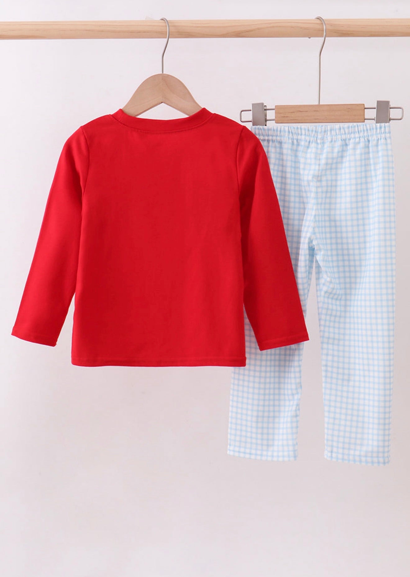Red character embroidery boy’s pants set