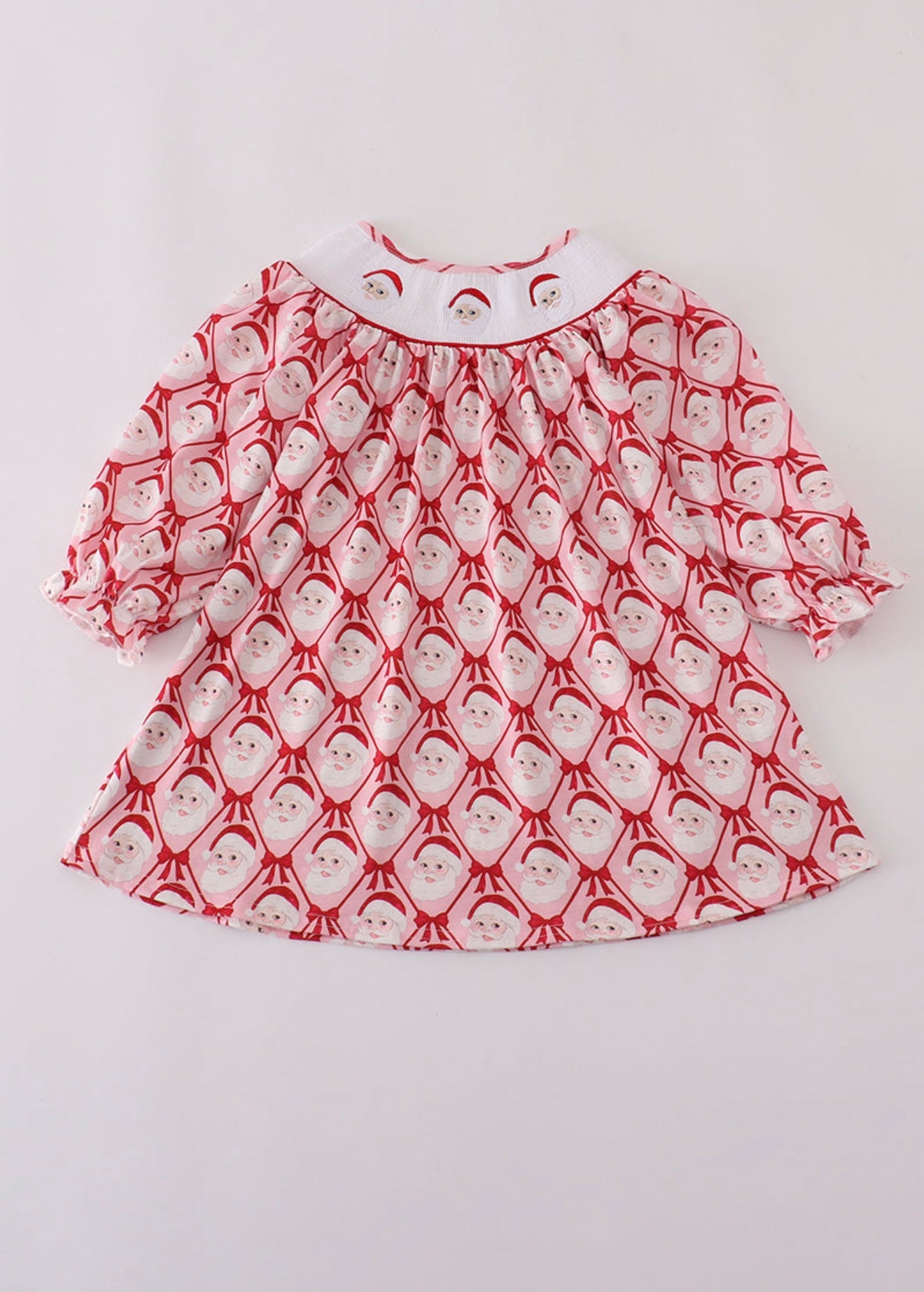 Bring festive cheer to any holiday gathering with this playful Red Santa Claus Smocked Dress. Featuring charming smocked details and a vibrant red hue, it captures the magic of Christmas with a fun, youthful flair.