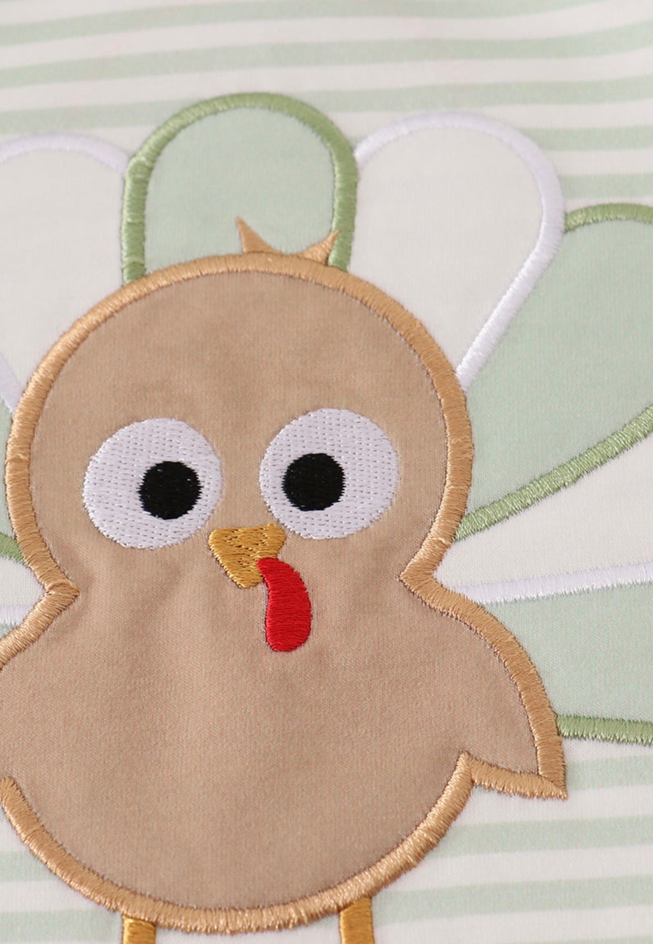 Sage Turkey Appliqué Stripe Boy’s Romper